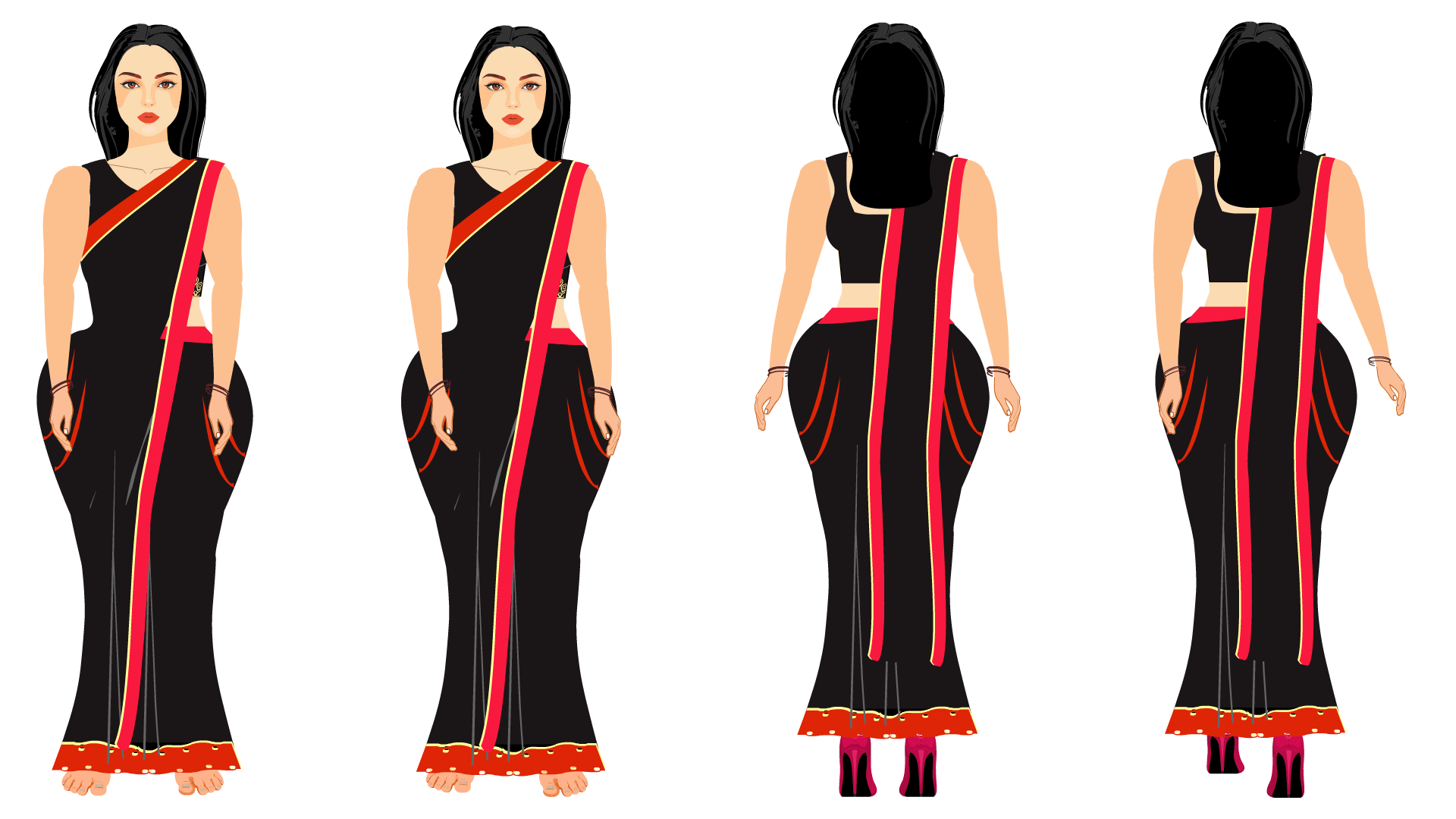 2D Young Woman Character Set in Saree (WOM003)
